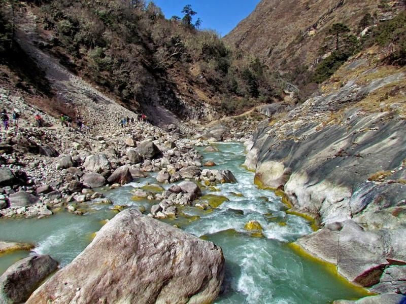 Bugünün rahat bir yürüyüş olacağını düşünüyordum. Kahvaltıdan sonra saat 08.00’de yola çıktım. Bugünkü yürüyüşün 4,5-5 saat süreceğini söylemişti Furwa. Bir süre yükseldik ve sonra inişli çıkışlı kolay bir parkur kat ettik. Bir noktaya geldiğimizde artık yaklaştığımızı düşünürken Furwa hedefimizin bizim tarafta değil vadinin karşı tarafında olduğunu söyledi. İyi, ne yapalım! Biraz sonra aşağıda vadide akan nehre doğru inmeye başladık. Düz iniş olsa daha rahat başa çıkacağım ama sürekli basamaklar var. Onlar da dizleri mahvediyor. Yine de keyifli keyifli yürümeye devam ediyorum.