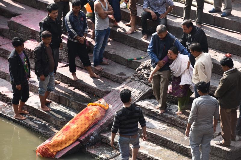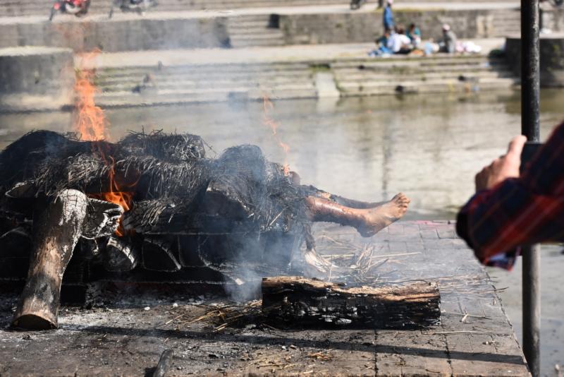 Bagmati Nehri boyunca yürüdükçe yükselen dumanlar ve koku bize neler göreceğimizin habercisiydi. Karşımızda Hindu inancına göre yakılan ölüler ve onları karşıdan izleyen ve fotoğraflayan onlarca turist. Bagmati Nehri’nde yıkanan ölülerin külleri Hindistan’da Ganj Nehri’nde yıkanıp yakılan ölülerin küllerine karışıyor. Bu pis suya rağmen ara ara insanlar o kutsal zannettikleri suya girip o suyu ellerine yüzlerine sürüyorlar. Orada kısa süreliğine de olsa bir rehber ediniyoruz. Yanımıza gelerek bir şeyler anlatmaya başlıyor ve bize oraları gezdiriyor. İlk önce bize yardımcı olan yerli halktan birisi zannediyoruz, gezi bittiğinde para istediğinde ve bir de verdiğimiz parayı beğenmediğinde anlıyoruz ki bizi gözüne önceden kestirmiş.