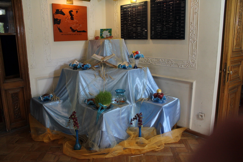 Nevruz dolayısıyla her yerde otel, restoran, işyerleri girişinde S harfi ile başlayan 7 adet sarımsak, elma, balık, şeker, yumurta gibi yiyeceklerle süslenmiş masalar var. Masalarda buğday çimi olmazsa olmazlardan.