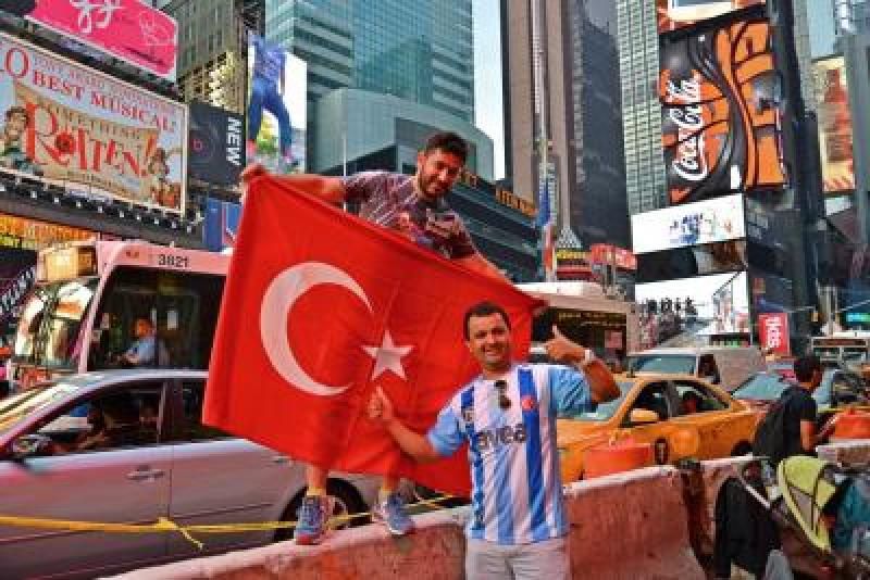 Ben bir ara geçit yapan kamyonetlerin arkasında buldum kendimi, çıktım tepesine aldım bayrağı ve New York’ta bunu yapmak çok eğlenceli. Benim için unutulmaz bir gün oldu diyebilirim. Yürüyüşün sonunda bir meydanda toplanılıyor ve sırada konser var. Ben ise bir an önce Times Meydanı'nı görmek için sabırsızlanıyorum. Konseri her zaman dinleriz canım aklımda benim başka bir plan var. Yürüyüşten sonra hedefimde Times Meydanı. Ay Yıldızlı bayrağım ile burada poz vermek için fırsat kolluyorum ve nihayet aklımdaki bu hayalimi gerçekleştiriyorum. Bugünlük New York bu kadar. Bu gece konaklamak için New Jersey’deyim. Amerika’daki son durağım olan New York’u keşfetmek için yarın yeniden geleceğim. Bakalım New York’ta başka neler var?