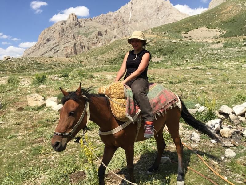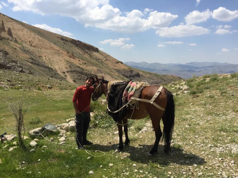 Yolumuzu tamamladığımızda Ahmet Abi'yi aradık ve atımızı teslim almak ve bizi aşağıdaki köye götürmek için geldi. Bizim hiç bir sorun yaşamadan zirveye kadar gidip gelmiş olmamıza son derece şaşırdı. Herhalde bizden çok bir umudu yoktu, atı kaybedeceğimizi ve yarı yoldan döneceğimizi düşünüyordu. Dediğim gibi son derece amatör bir ruhla yolumuzu tamamlamıştık. Özellikle ata hiç binmemiş olmamıza ayrıca şaşırdı. Düldülümüzle vedalaşırken aşırı ısrar edince hatıra fotoğrafı almak için ata binebildim.