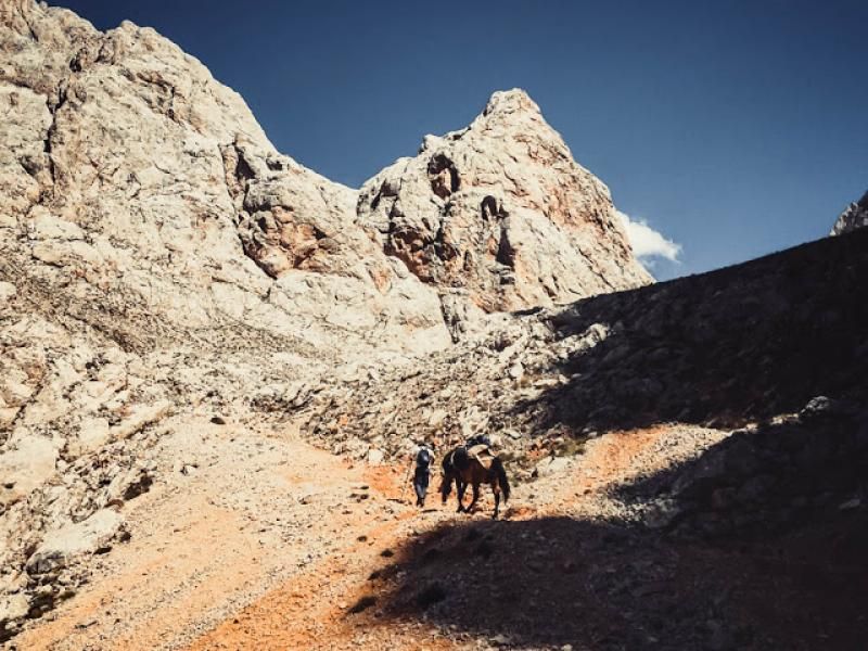 Aldık Düldül'ümüzü ilk kamp alanına geçtik. Eşyalarımızı ata güzelce yükleyip bağladık. Bu yerleştirme işi çok önemli. Yolda giderken semerden kayıp düşerse at ürkebilir. Zaten at her şeyden ürkebilir. Yılandan, böcekten, aşırı yüksek sesten, arkasından sinsice yaklaşmanızdan bile ürkebilir. Atın ipini ne olursa olsun bırakmıyoruz. At ürküp paniklerse kaçar ve dağın başında eşyalarımız olmadan kalırsak sonumuz hiç iyi olmaz. Bu sebeple ata hakim olmak son derece önemli. Zaten öyle hisli hayvan ki bir günde arkadaş olduk. Eşyalarımızı taşıyor diye mahçubuz zaten hayvana, bir de bize öyle uysal yaklaşıyor ki. Resmen bize can yoldaşı, dost oldu. Yolu çok iyi biliyor ve bizim rotadan sapmamıza engel oldu. Belli yerlerden su içiyor, öyle her yerin suyunu sevmiyor. Atla Ağafendi hep önden gittiler ben genelde arkalarından yürüdüm. Eğer biraz fazla geride kalıp gözden kaybolursam at bunu fark ediyor ve durup beni bekliyordu. Ne iyi bir arkadaştı, özledim Düldül'ü...