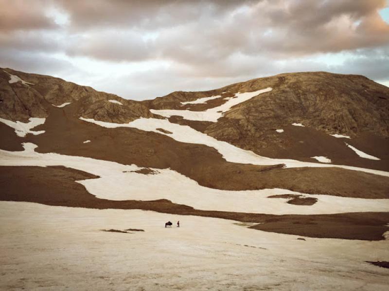 Bir çok yerde ne telefon çekiyor ne de internet. Telefonumuza yüklediğimiz Tunç Fındık'ın haritası ve wikiloc programıyla internetimiz olmasa da rotamızı takip edebildik. Her 15 dakikada bir hevesle telefona bakıyoruz, ne kadar gitmişiz diye takip ediyoruz. Bu sefer kesin çok tırmandık dediğimizde bir bakıyoruz ki ancak 100 metre çıkabilmişiz. Temmuzun sıcağında güneş tepemizde bir yandan yakıyor, bir yanda da yolumuza hala erimemiş karlar çıkıyor. Gölgede soğuk vuruyor. Tam bir karasal iklim. Yollar gerçekten zorlu ve müthiş yorucu. Biz yoruldukça Düldül gidiyor onda maşallah tık yok.