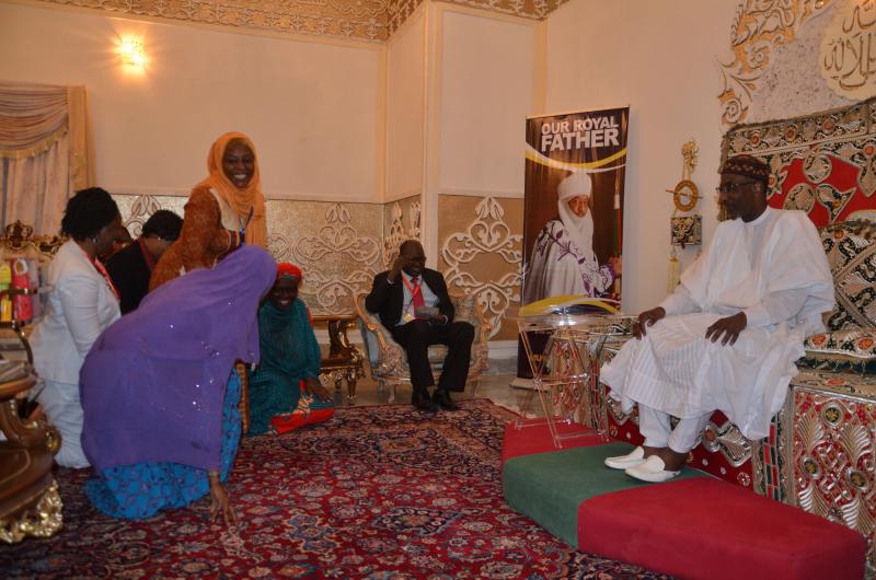 Akşamüstü 18.30’da odama telefon ederek aşağıya çağırdılar, geleneksel giysi için ölçü aldılar; dikilecek giysiyi ertesi akşam gala yemeğinde giymemiz bekleniyormuş. Daha sonra Kano emîrinin sarayına gidileceğini söylediler. Akşam yine koruma arabası önümüzde, yola koyulduk. Gece, yolların bir bölümünde, hatta otel çevresindekilerde bile, hiç aydınlatma yoktu. Yağmur altında emîrin sarayına ulaştık. Saray deyince çok şatafatlı bir yer anlaşılmasın. Büyük bir alan içinde birkaç binadan oluşan bir kompleks. Önce emîrin tahtının olduğu bir salona alındık, bir süre orada oturup resimler çektik. Daha sonra bir başka tahtlı salona alındık. İlkinin yeşil ve kırmızı renklerde olmasına karşılık bu ikinci taht odası beyaz ağırlıklıydı. Duvarlar, tavan ve taht oldukça süslü idi. Bir süre sonra ortalık hareketlendi ve emîr geldi. Nijeryalılardan bazıları adamı yerlere kapaklanarak selamladılar. Daha sonra odaya giren hizmetliler de emîrin karşısında yerlere kapaklanarak konuştular. Emîr 40-45 yaşlarında. Beyaz bir geleneksel giysi giymiş olarak geldi. Bazı doktorları tanıdığı belliydi; zaten o gün kongre açılışında da bulunmuş ve konuşma yapmış. Konuşmalarından açık düşünceli ve eğitimli biri olduğu anlaşılıyordu ki daha sonra bir dönem Nijerya Merkez Bankası başkanlığını yaptığını öğrendik. Emîr (ya da prens) Kano Bölgesi’nin hükümdarları ailesinden gelen, resmî bir yetkisi olmayan ancak Kano eyaletinde sözü geçen ve hükümete önerilerde bulunan devlet protokolünde de yer alan ve bölgede çok sayılan bir kişi.