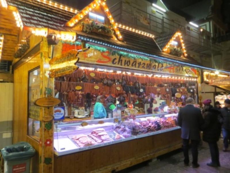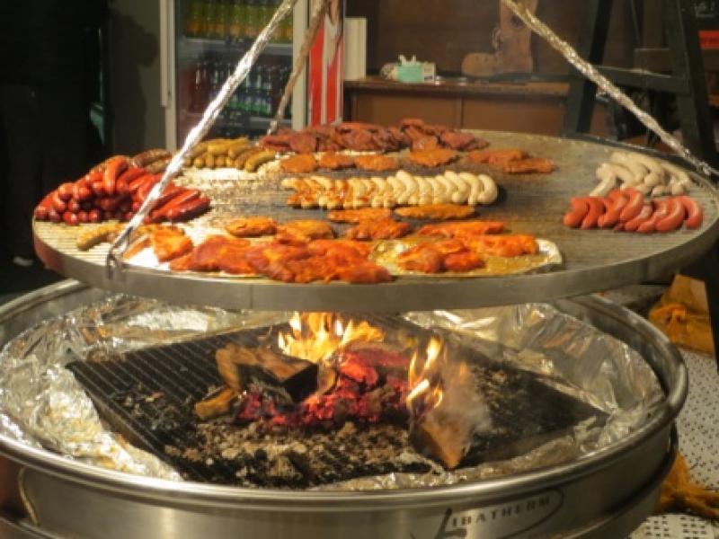Dolaşıyoruz, dolaşıyoruz… O kadar keyifli ki insan soğuğu bile hissetmiyor. Nerede ne yiyeceğiz, karnımız acıktı bunun bile farkında değiliz. Kalabalıkta insanlar neler yiyor bakıyorum. Tabii ki bir Frankfurter sosis ve bira buraya gelmişken kaçırılmaması gereken lezzetler. İşte size enteresan bir mangal gösteriyorum. E tabii bu kalabalığa ancak böyle bir mangal gerekli. Afiyet olsun.