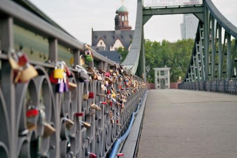 Römer Meydanı’na geldiğimizde bir grubun Christmas şarkıları söylediğini görüyoruz. Grup o kadar neşeli ki takılıp izlememek elde değil. İşte şimdi de Main nehrine geldik. Önümüzde 1479 yapımı Eiserner Köprüsüvar. Bu yaya köprüsü de aşk köprüsü olarak da adlandırılıyor. Çünkü çok güzel ve romantik bir manzaraya sahip. Hatta aşkları bozulmasın diye geleneklere uyup köprüye kilit bile takıyorlar. Böyle bir inanışınız var ise asma kilidinizi yanınızda getirmeyi unutmayın.