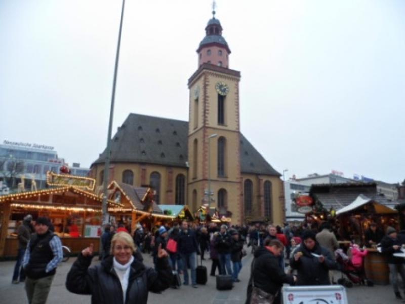 1880 yılında yapılmış olan bu opera binası, 1944 yılında 2. Dünya Savaşı sırasında bombalanmış, ama aynı mimaride ve modern bir şekilde yeniden 1981 yılında inşa edilerek hizmete açılmış. Şimdi gördüğünüz gibi eski heybeti ile Frankfurtluların ve tüm dünyalıların kulaklarının pasını opera olarak olmasa bile konser ve etkinlikleri ile silmeye devam ediyor. Junghof Strasse boyunca ilerliyoruz. Burası Frankfurt’un alışveriş çarşısı olmalı. Tüm küçük büyük mağazalar bu cadde devamına ve yan sokaklarına dağılmışlar. İlerledikçe önümüze birçok güzellik çıkıyor. İşte demokrasinin sembolü olmuş St. Paul Kilisesi ve etrafında kurulu rengârenk ve ışıl ışıl süslemelerle dolu Christmas pazarı. Bu pazarın aralık ayı boyunca burada kurulduğunu zannediyorum. Diğer zamanlarda tabii ki şehrin meydan ve sokakları olarak halka hizmet veriyorlar. Ama şimdi aralık ayına yakışır bir eğlence merkezine bürünmüş durumdalar. Hangi bir standa, hangi bir dükkana bakacağımıza şaşırıyoruz. Size hangi birini anlatacağım bilmiyorum. Bari fotoğraflarla bu anlatımımı destekleyeyim.