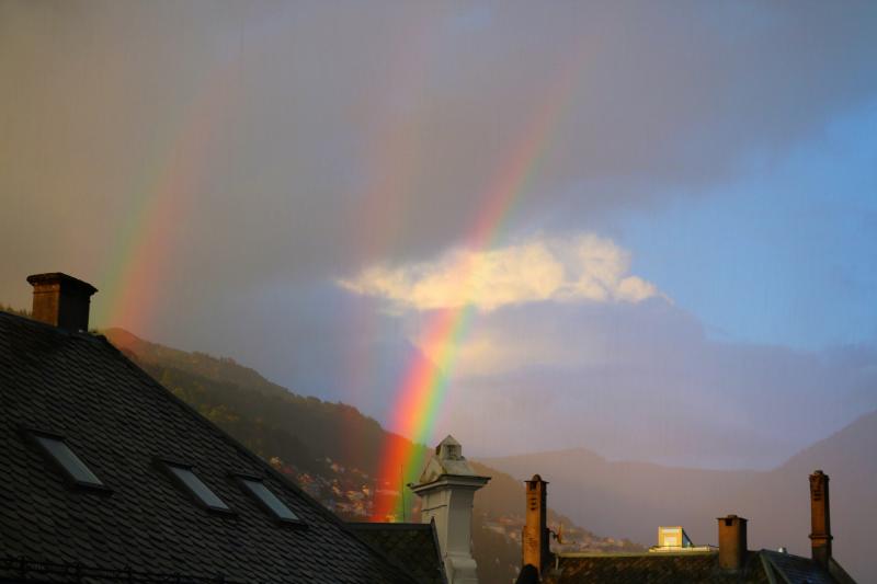 Norveç’in en şirin şehrine geldiğimizi şehrin girişi itibariyle anladık. Çatıların her biri renk cümbüşü ile merhaba dedi. Bergen'de sürekli yağmur yağıyor. Öyle ki 2006 yılında, 85 gün boyunca aralıksız yağmur yağmış bu güzel şehirde. Fakat şunu da söylemekte fayda var: Yağan bu yağmurların ardından şahane bir gökkuşağı çıkıyor, şehir harika bir görüntüye bürünüyor bu sayede.