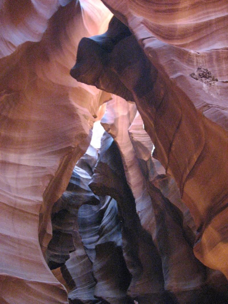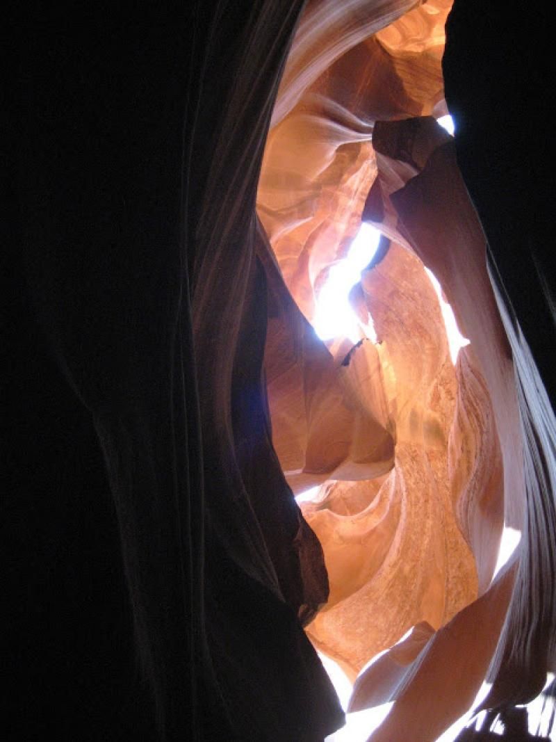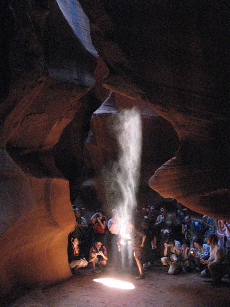 Takdir edersiniz ki içerisi epey karanlık… İşte Antelope Canyon'un en önemli karakteristik özelliği; güneşi, gün içinde sadece 11.00-14.00 arası civarında çok kısa bir süre alıyor olması… Bu nedenle kanyonu bu saatler arasında gezebilmek için haftalar, hatta aylar öncesinden rezervasyon yaptırmak gerekiyor ve sadece 1 saat vakit veriliyor her gruba Antelope Canyon’u görmek için... Zira çok ama çok küçük bir koridor olduğundan, birim zamanda 60 kişiden fazla ziyaretçi alamıyor. O kadar minicik bir doğa harikası, o kadar çok talep görüyor ki şimdi anlıyorum niye o civardaki oteller o kadar dolu... Yağmur yağdığında zaten ziyarete kapanıyor kanyon. Çünkü sular seller götürdüğünde o daracık koridorun içinde su birikiyor, akamıyor ve dolayısıyla tıkanıyor.