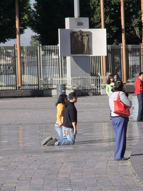 Mexico City’yi gezmeye ilk olarak en önemli dini merkezlerinden biri olan Notre Dame de Guadelupe Bazelikası’ndan başlıyoruz. Bu bazelika 17. Yy’da yapılmış. Her yıl 12 Aralık’ta ülkenin her yerinden inançlı insanlar buraya akın ediyormuş. Burası Lizbon’daki Fatima gibi bir hac yeri. İnsanlar dizlerinin üzerinde yürüyerek dilekler diliyorlar. Ya da kabul edilen, yerine gelen dilekleri için dualar ederek dizlerinin üzerinde büyük katedrale (Bazelika) kadar gidip ibadetlerini yapıyorlar. Katedral’in içinde Meryem Ana freskinin önüne, izdihamı önlemek için yürüyen bir mekanizma koymuşlar. Bazelika’nın hemen yanında ise yeni modern bir katedral yer alıyor.
