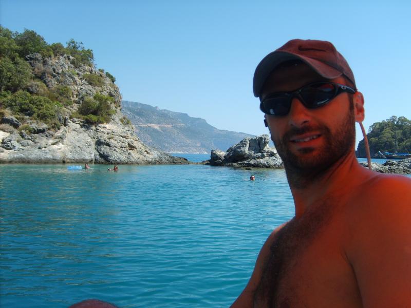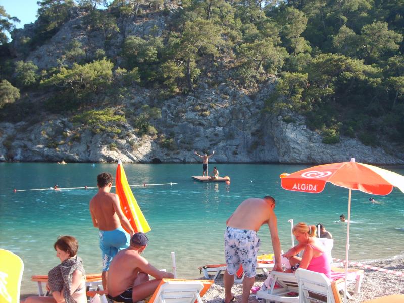 Gidenler bilir, gitmeyenlere tavsiyem erkenden Ölüdeniz’de olun. Yazın turistik bir yer olduğu için çok yoğun oluyor. Fotoğraflarda görünen kayalıklara yüzmesi zevkli. Kayalıklara çıkıp iple sallanarak denize atlanabiliyor. Yine fotoğraftaki carrettayı fotoğrafladıktan sonra hemen suya girip yanına gittim. Birkaç saniye sonra dalıp kayboldu.