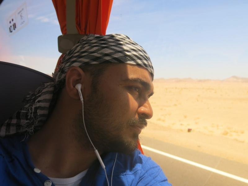 Yol boyu elimdeki Mısır kitaplarına daldım ve Kahire’de gezebileceğim yerlerin tek tek notlarını çıkardım. Ezan saatlerinde otobüsün içinde ezan okunuyor. Fas'ta da alışveriş merkezinde hoparlörden ezanı verdiklerinde garip gelmişti bana. Bunun yanında otobüste birkaç kez anons yapıldı. Herhalde insani bir refleks olsa gerek her seferinde sanki Arapça biliyormuşum gibi kulaklıklarımı çıkarıp anonsu dinledim. Sonra çaktırmadan geri taktım kulaklıklarımı. Ne de olsa otobüsteki hiç kimse benim Arapça bilmediğimi bilmiyor.