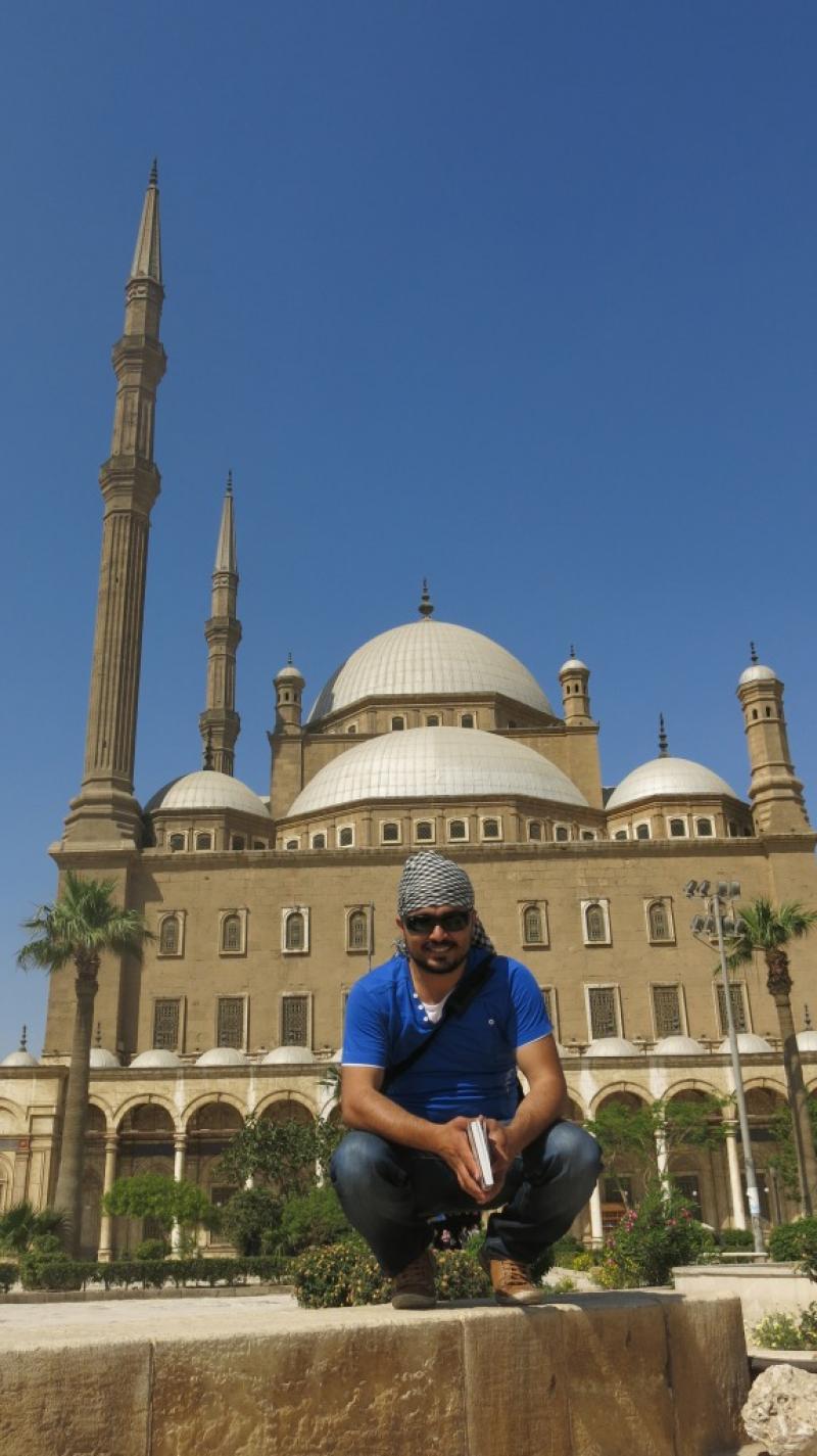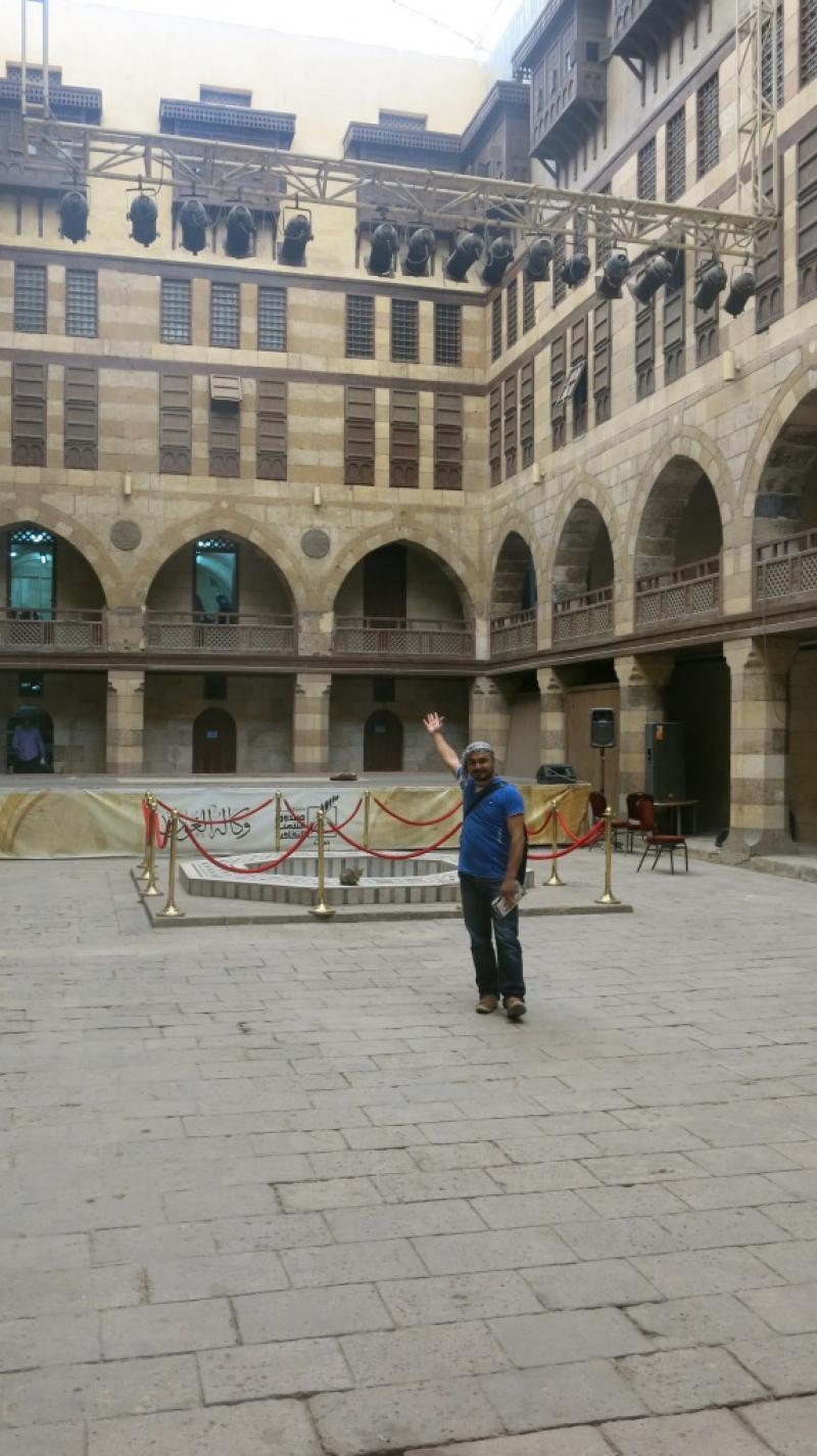Çıktığımda anladım ki Kahire’yi bu külliyenin tepesinden izlemek gerekiyormuş. Seyyar satıcıların olduğu dar sokakları, çarşıyı, insan ve araç trafiğini tam anlamıyla gözlemlemek ve şehrin o kalabalık sesini dinlemek için birebir bu mekan. Kendi kendimi fotoğraflayabilmek için fotoğraf makinesinin zaman ayarı oldukça işime yaradı. Aşağı indiğimde görevli külliyeyi gezmek ücretsiz ama minareye çıkmak ücretliydi diyerekten benden para istedi. Ben de art niyetli olan bu kişiye elimdeki bozukluklardan verdim. Mısır’ı bir kez gören çevremdeki insanların “bir daha kesinlikle gitmem” demelerinin nedenini yavaş yavaş anlıyorum.