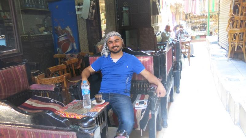 O kadar çarşı sokakları dar olmasına rağmen bir değil iki araç karşılıklı o yaya yolundan gitmeye çalışıyorlar. Ben de o dar sokaklardan yürüyerek kitabımda tavsiye edilen Fişavi’nin Kahvesi’ne gittim. Eğer İstanbul’a gidip Nevizade’de bir bira yudumladıysanız işte o sokağa fazlasıyla benziyor. Sanki 10 yıldır burada kahve içiyormuş gibi kolay buldum burasını. Bana ne içmek istediğimi sorduklarında “buranın en güzel kahvesini” dedim. Türk Kahvesi’ni seven ben bundan sonra Mısır Kahvesi’ni daha çok seviyorum. Bizimkine çok benzeyen ama daha lezzetli ve cam bardakta sunulan bir kahve.