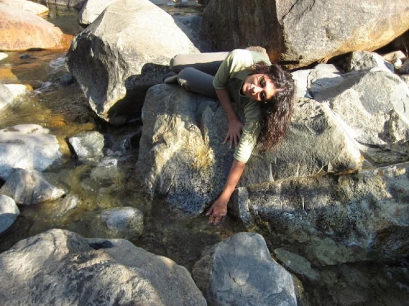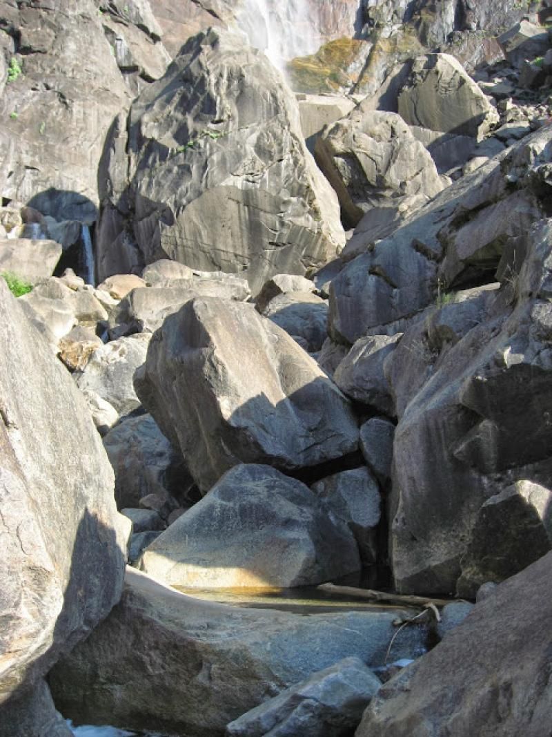 Dün ilk günümüzdü, BridalveilŞelalesi'ne gittik. En kolay ulaşılanı o olduğu için… Etrafında şahane kayalıklar var. Orada çocuklar gibi şen şakrak oynadık.
