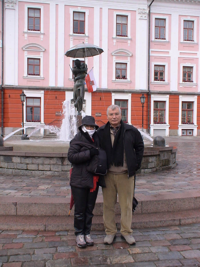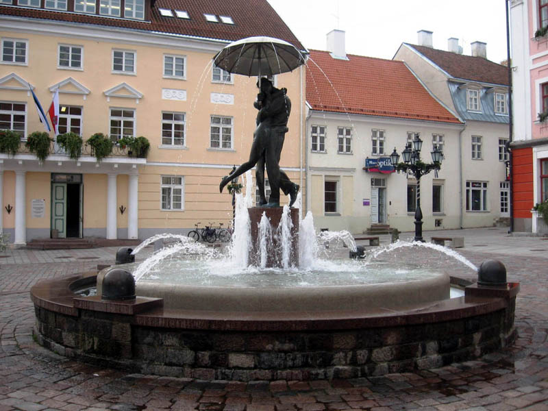 Belediye meclis binası önündeki meydana “Town Hall Square” deniliyor. Meydan çok sevimli ve şirin. Meydanın ortasında yuvarlak bir havuz, havuzun da ortasında birbirine sarılmış iki öğrenci ayakta ve öpüşüyorlar. Öpüşen öğrencilerin başlarının üzerinde de, Tartu’nun devamlı yağmurlu olduğunu simgeleyen bir şemsiye var.