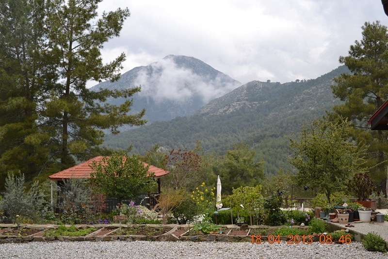 Evimiz, doğayla iç içe yemyeşil bir tablo içinde, çam ağaçlarının arasında ve ormanın içinde adeta kaybolmuş, yemyeşil ağaçlar, çamlarla kaplı, kendine bulutlardan taç yapmış yüksek, sarp Geyran dağı eteklerinde, renk renk çiçekler, mevsim sebzeleri (bol enginar vardı), bahar çiçeklerini tüm güzelliğiyle patlatmış ağaçlar arasında.