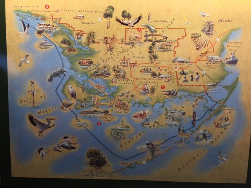 Key West'ten gezimizi tamamlayarak Orlando'ya dönerken, yolumuz Everglades doğal alanından geçecek, bu bölgenin güneyinde yer alan ve bölgenin % 20'sini kaplayan Everglades Ulusal Park'ına da uğrayalım istedik. Böylesine büyük ve önemli bir parkı bir günde gezmenin mümkün olmadığını biliyoruz elbette, ama bu kadar güneye inmişken görmeden geçemedik. UNESCO Dünya Mirası Listesi'nde, koruma altındaki park, büyüklük olarak Yellowstone ile Death Valley Milli Parklarından sonra üçüncü büyüklükte, subtropikal iklimli vahşi doğa alanı olarak ise en büyük park. Amerika Birleşik Devletleri'ndeki vahşi hayat alanı ve dünyadaki tüm ağaç çeşitlerinin bulunduğu üç yerden birisi olan parkı yılda ortalama bir milyon kişi ziyaret ediyormuş. O halde biz de görmeliyiz dedik ve düştük yollara.Park içinde, korumalı çok sayıda vahşi hayvan türleri (Florida panteri, rakun, timsah, puma, Amerika timsahı gibi), kaşıkçı kuşları ve leylekgiller familyalarından bir dizi kuş türü, pelikanlar ve çok çeşitli bitki türü yaşamakta. Bu korunan türler arasında değişik bitki ve ağaç türlerinden beni en etkileyen, "mangrow" ağaçlarının kökleri oldu. **Mangrov, tropikal ve subtropikal bölgelerde, gelgit sonucu oluşan haliçlerde, bataklıklarda ve çamurlu kıyılarda sık ormanlar oluşturan bazı ağaç ve çalı türleri ve oluşturdukları ormanlar. Çevreyi erozyondan korumaları nedeniyle önemli. Oysa bazı bataklık kısımlar zamanla insanlar tarafından kurutulmuş ancak doğa ekolojisine aykırı bu durumun yanlışı anlaşılarak, tekrar bataklığa dönüştürülmesi için çalışmalar başlamış.