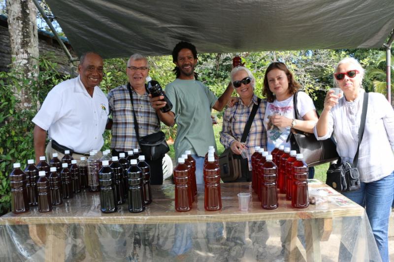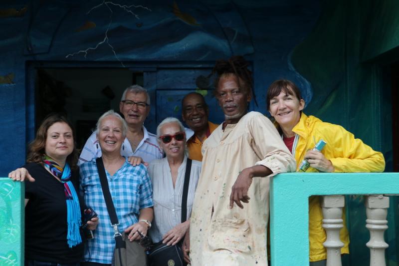 Dangriga’da önce bir ressam ve müzisyenin galeri ve stüdyosunu gezdik. Burası aslında bir aile evi. Evin hanımı bir Alman, eşi Pen ise Afrikalı. Aile önceleri buraya seyahat amaçlı gelmiş. Birkaç geliş gidiş sonrası yerleşmeye karar vermişler. Çocuklarının eğitimi için bir süreliğine Almanya’ya, daha sonra yine Dangriga’ya gelerek burada kendilerine sanatla iç içe bir dünya kurmuşlar. Afrikalı eş resim yapıp pazarlıyor. Aynı zamanda müzikle de uğraşıyor. CD’leri var. Kızları ise çocuk kitapları yazıyor.