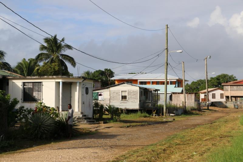 Dangriga’da evler genelde direkler üzerine kurulmuş. Bunun nedeni Karayip denizinden gelen su baskınlarına karşı bir önlem niteliği taşıması. Ayrıca böcek ve haşerata karşı da bir önlem.