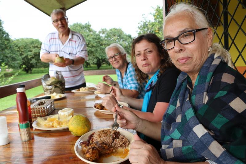 Mağara dönüşü portakal bahçeleri arasında öğle yemeğimizi yiyoruz. Kendi topladığımız portakalların suyunu içtik. Yemekte portakal suyu isteyince “gidin toplayın portakallarınızı, biz suyunu sıkıp servis edelim” dediler. Burada yediğimiz ve suyunu içtiğimiz portakallar mükemmeldi.