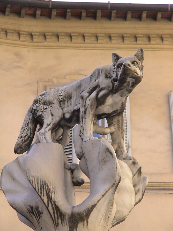 Yaygın bir Roma efsanesine göre Romulus Roma'nın kurucusu, Romus ise ikiz kardeşiymiş. Her ikisi de güçlü ve yiğit delikanlılarmış. Yine efsaneye göre bu iki kardeşi ormanda bir dişi kurt emzirip büyütmüştür.