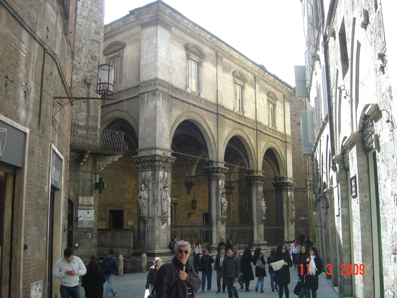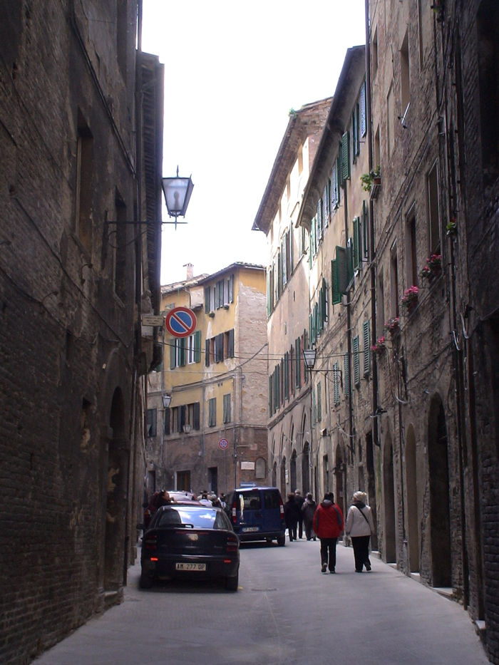 Siena tam bir ortaçağ kasabası görünümünde, burayı Etrüskler kurmuş. Kırmızı tuğlayı ilk bulan Etrüskler olduğu için, buradaki binalar hep kırmızı tuğla ile örülmüş.