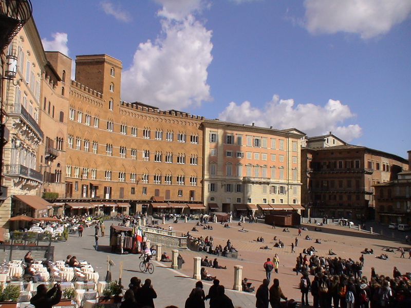 Dar sokaklardan geçerek Piazza del Campo meydanına iniyoruz. Yolda Guiness Rekorlar Kitabına giren dünyanın en küçük penceresini görüyoruz. Normal bir binada diğer pencerelerin yanında yer almış minicik bir pencere.