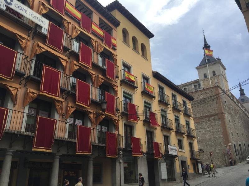 Toledo'da en çok dikkatimi çeken şeylerden biri balkonlarda asılan bayraklar oldu. Sebebini sonradan epey araştırınca buldum. Corpus Christi denilen dini bir festival dolayısıyla tüm şehir böyle bayraklarla süsleniyormuş. Bu festival Toledo'nun en önemli etkinliklerinden biriymiş. Festival zamanında orada olamasam da öncesinde en azından festivalin etkilerini görmüş oldum :) Mayıs ayında giderseniz büyük olasılıkla siz de böyle süslü balkonlarla karşılaşacaksınız.