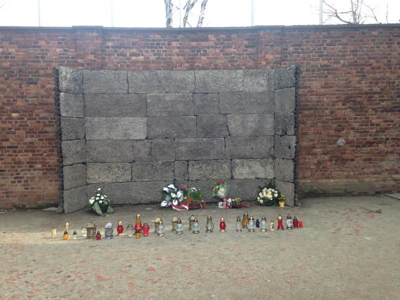 Binaları teker teker gezdikten sonra bir açık alana geçiyoruz ve orada insanların duvar dibine dizilerek kurşuna dizildiklerini öğreniyoruz. Nazi askerleri inanları önceleri yaylım ateşi ile öldürürken, daha sonra zayi olan mermilerden dolayı tek tek bu duvara getirip diz çöktürdükten sonra başlarına tek mermi sıkarak infaz ettiklerini öğreniyoruz. Buranın hemen yanında uzun bir boru sistemi ile toplu idamlar yapıldığını, üstte çengel bulunan direklerde ise insanların arkadan ellerinden bağlanarak çengele asılmak sureti ile işkence gördüklerini öğreniyoruz.