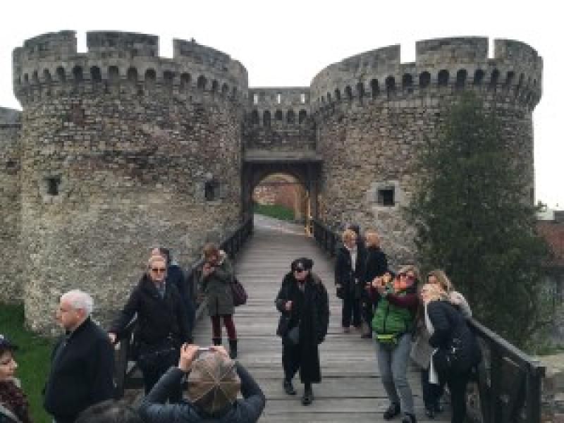 Rehberimiz kale kapısında bilgiler verirken; ben yine yaramazlıklar peşindeyim. Fakat bu noktadaki ilginç ayrıntıyı kaçırmıyorum elbette. Tüm kale taş olduğu halde devasa kale kapısı ahşap. Neden dersiniz? Sebebi müthiş: Savaş sırasında kalenin etrafına içeriden yağlı kütükler atılıyor ve iş zora geldiğinde bu kütükler ateşe veriliyormuş. Böylelikle son savunma kalkanı olarak kale ateşten bir gömlekle sarılmış oluyor. Kale kapısı da bu arada yandığı için kaleye ulaşmak imkansızlaşıyormuş. Çok ilginç değil mi? Belgrad hakkında soracağınız her şey için halen orada yaşayan sevgili gezgin arkadaşım Güneş Akdoğan'ın bloğuna mutlaka bir göz atın derim.