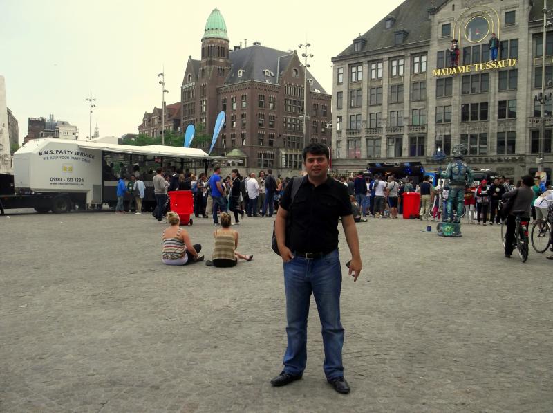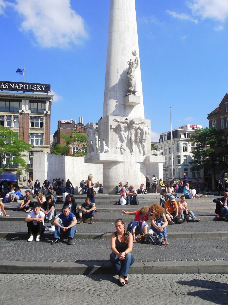 Dam Meydanı, en ünlü meydanı. Yerli halk tarafından kısaca Dam deniyor. Burası Amsterdam’a ismini veren Amstel Nehri boyunca kurulu olan 13. yy.'da inşa edilmiş ilk barajın bulunduğu yermiş. Bir zamanlar balık pazarı olan meydan, 17. yy'da buradaki belediye sarayı ve yakınındaki borsa sayesinde şehrin siyasi ve ticari yaşamının merkezi haline gelmiş. Meydan günümüzde halen şehrin en önemli yerlerinden biri. Şanslı sayılırız. Ünlü şehir partilerinden birine rastladık.