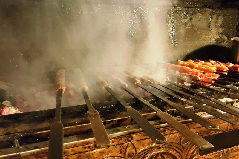 Tarihi yerleri gezdikten sonra artık Erzurum'un lezzetlerini deneme vakti geldi. İlk lezzet durağımız meşhur cağ kebabını denemek için gittigimiz Koç Cağ Kebapçısı oldu. Karşılaştığım birçok kişi cağ kebabını Erzurum'da en iyi yapan yerin burası olduğu söyledi. Cağ kebabı yatay şekilde pişirilen kuzu etinin şişlere geçirilip sonra tekrar ızgara edilmesiyle yapılıyor. Böylece et iyi pişmiş oluyor. Ancak etin daha yumuşak ve sulu kalması için ızgara edilmeden servis edilen şekli de oluyor. Buna da Tatari deniliyor. Ben hem normal şekilde yapılanını hem de Tatari şekilde pişirilenini yedim. Bana göre Tatari versiyonu çok daha lezzetli! Üstüne bir de Erzurum'un meşhur kadayof dolmasından yiyerek lezzet turumuzun ilk ayağını tamamlamış olduk.