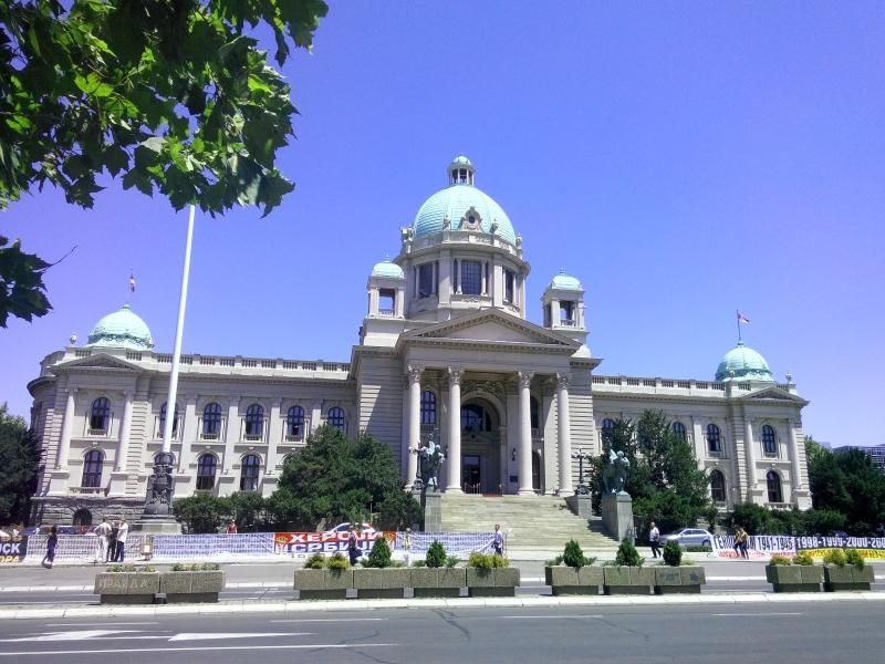 Gitmeyi planladığım en uzak mekan 40 dakika yürüme mesafesindeymiş. Olsun… "Sadece tatillerde” yürümek bizim işimiz ;) Cumhuriyet meydanından başlıyorum yürüyüşüme. Bu meydan 4 yol ağzı gibi, her yol buraya çıkar. Bir tarafı Knez Mihailova bir tarafı Skadarlija bir tarafı Studentski Park. Tüm gezilecek mekanlar bu meydanın civarında. Ben ilk olarak parlamento yönünde ilerliyorum. Parlamento binası mütevazi bir bina. İhtişam sever bir millete mensup biri olarak görüşüm bu tabi ;) Komşusu olan devasa postane ile karşılaştırınca ilginç geliyor.