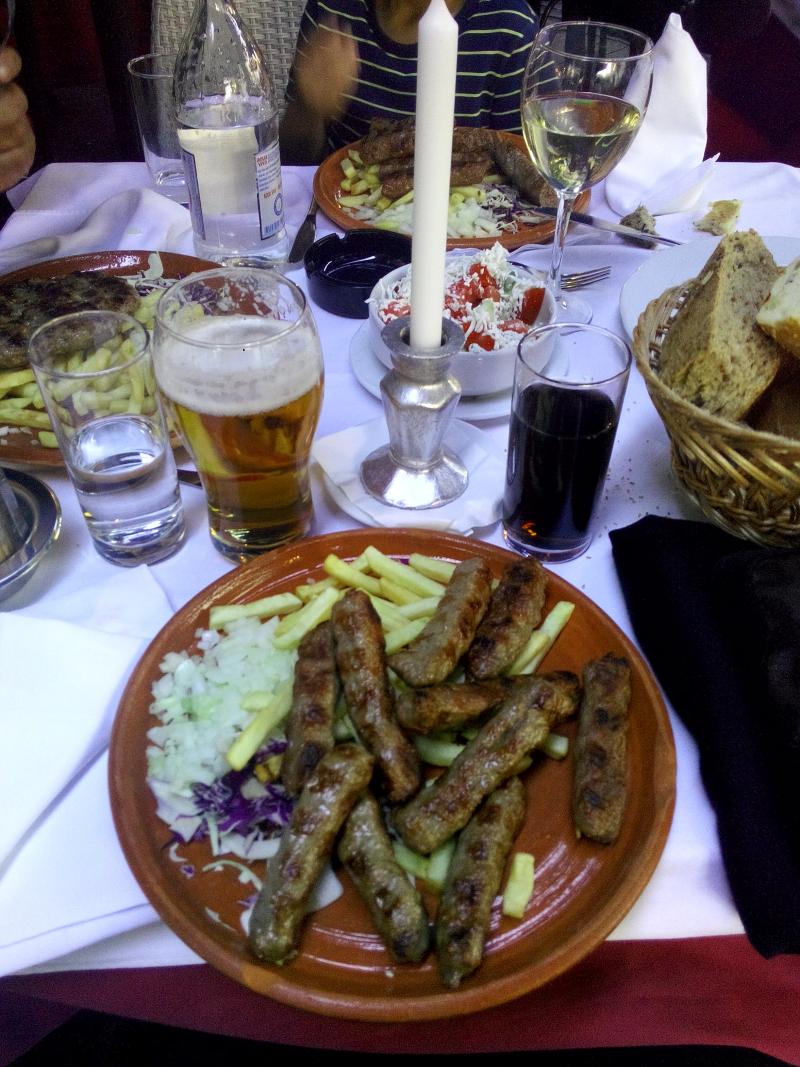 Şeker Türk aile de teşrif ediyor ve güzel bir sohbet eşliğinde çalan Sırp müzikleriye hoş bir gece geçiriyoruz. Balkanlarda her yerde göreceğimiz “cevapi” (tüm Baklanlarda benzer isimlerde bulunabilir) adında bir tür köfte sipariş ediyorum. Abartısız 500 gr et ve yanında dolu dolu soğanla servis ediliyor. 2 kişilik bir porsiyon resmen.