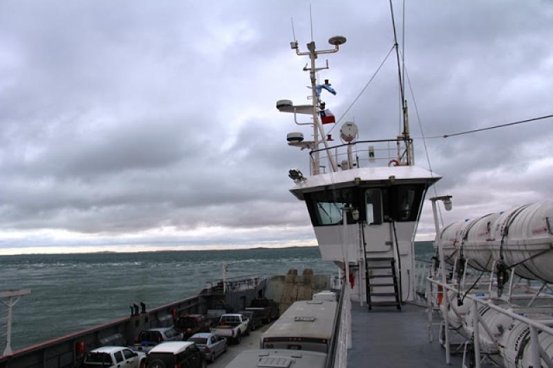 İlk gelen feribota biniyoruz. Geçişimiz sadece 30 dakika kadar sürecek. Hava soğuk, rüzgâr sert ve deniz dalgalı. Bir süre dışarıda Magellan Boğazını izledikten sonra içeri giriyorum.