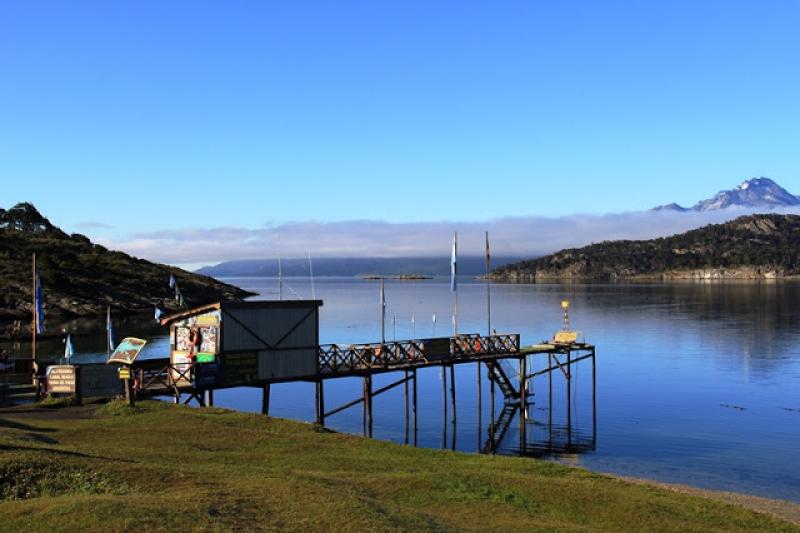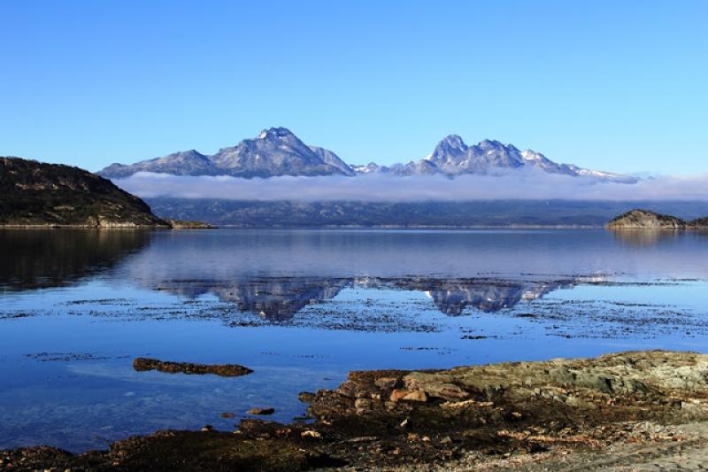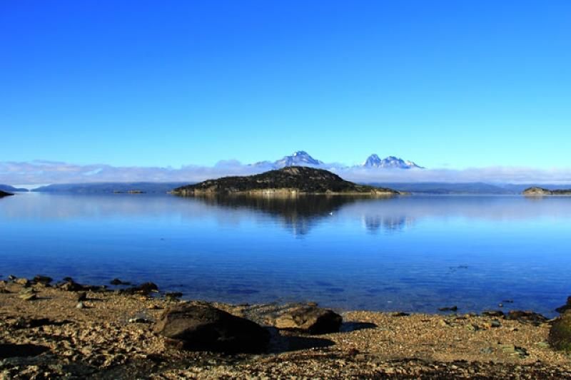 Ulusal Parka kişi başına 110 Peso (yaklaşık 40 TL) olan ücretimizi ödeyip giriş yaptıktan sonra, Bahia Ensenada yani Ensenada Körfezinde araçlarımızdan iniyoruz. İşte o noktada bizi karşılayan manzara inanılmaz. Karşımızdaki suyun yüzeyinde en ufak bir kıpırdama bile yok, az ilerideki Redonda Adasına kadar -Isla Redonda- dümdüz bir mavilik uzanıyor. Arka taraftaki dağların zirveleri bir bulut tabakasının üzerinde kendilerini gösterirken, etekleri aynı bulut tabakasıyla örtülü ve en yukarıda gökyüzü masmavi parlıyor. Daha da şaşırtıcı olan karşımızdaki bu sakin suyun Beagle Kanalı olması, yani bir göl değil, bildiğiniz deniz…