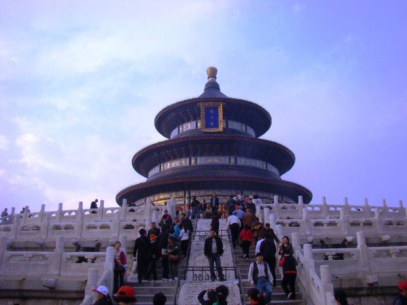 Cennet Tapınağı - Sırada Cennet Tapınağı var. Gidip görmeye değer, hatta gerekli yerlerden biri, zira burası Pekin’in simgelerinden biri. Ming ve Qing mimari sanatının en güzel örneği olarak kabul ediliyor. O devirlerde cennetin dairesel, dünyanın da kare olduğuna inanıldığı için; Cennet Tapınağı bu inanca göre kuzeyi daire, güneyi kare şeklinde inşa edilmiş. Kırmızı kare zemin üzerine oturtulmuş, büyükten küçüğe yuvarlak mavi katlar, her katta ayrı çatı yükselirken, yeryüzü kare, cennet ise yuvarlaktır; yani dünyanın üzerinde cennet yükselir inancı vurgulanmış. Parçaların birleştirilerek oluşturulduğu binaların inşasında herhangi bir metal (çivi gibi) kullanılmaması da bu yapının bir başka özelliği.