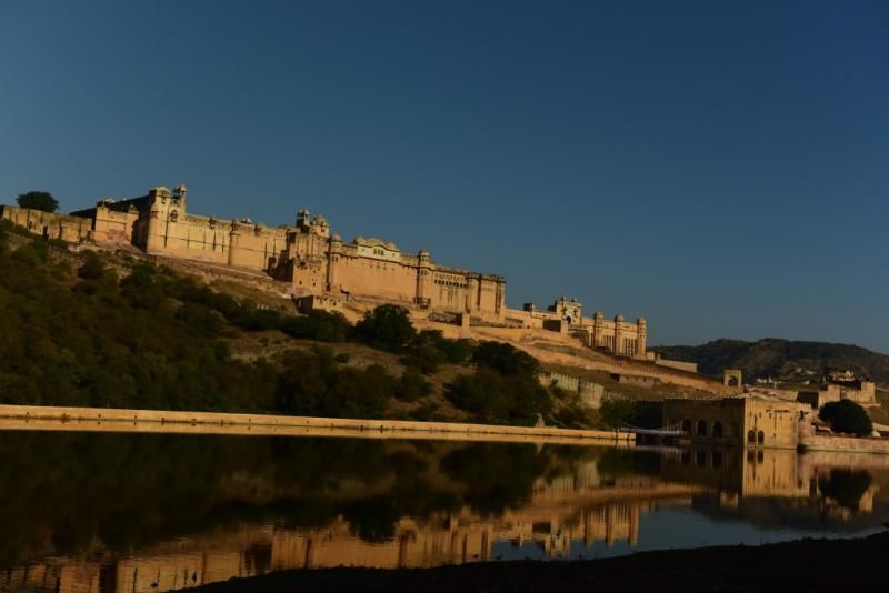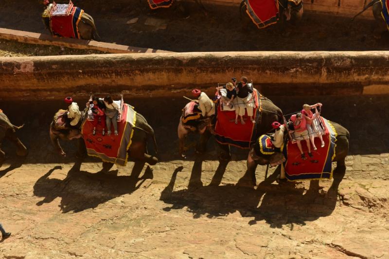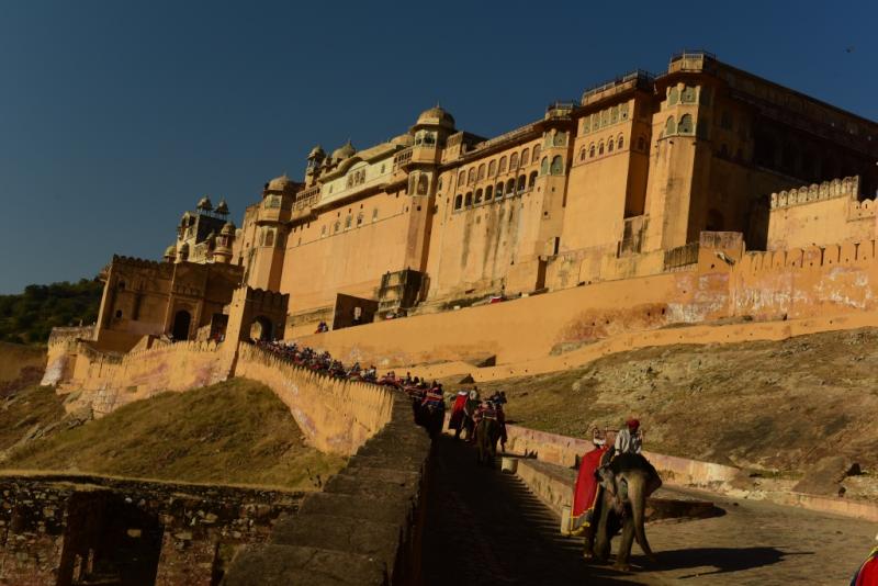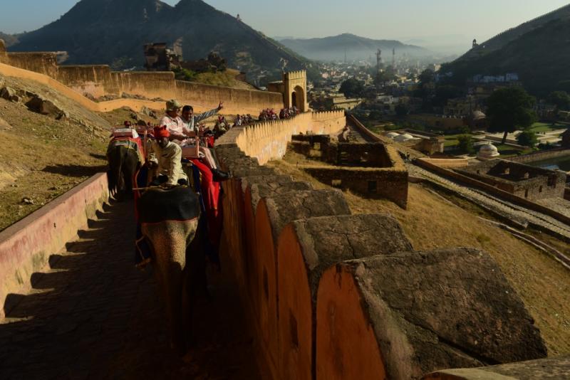 Amber Kalesi, şehrin yaklaşık 10 km dışında ve Maota Gölü’nü tepeden görüyor. Bu hakim tepede kurulu Amber Kalesi’ne zikzak biçiminde bir rampadan fil üzerinde çıkılıyor. Fil başı 900 Rupi (30 TL) ödeyip bir file iki kişi binerek bu fil rampasını fillerin üzerinde çıktık. Burada 230 tane fil gün boyu ring yapıyor.
