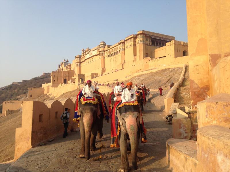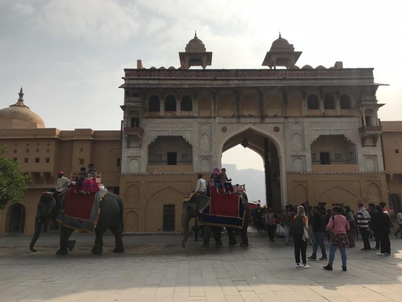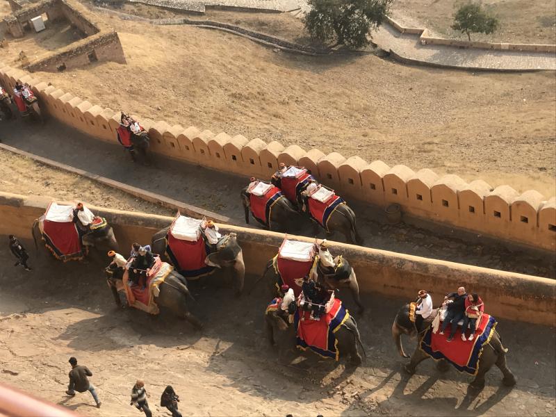 Kale gezisini en unutulmaz kılan ise aşağıdan, kalenin içine kadar yapılan ve yaklaşık 15-20 dakika süren fil yolculuğu oluyor. Fillere kök boyalar ile yapılmış süslemeler ve fil sürücülerinin kıyafetleri haliyle heyecanı artırıyor. Kaleye, fil üzerinde iki kişi oturarak çıkabildiğiniz gibi isterseniz yürüyerek de çıkabilirsiniz. Farklılığı deneyimlemek adına biz de fil ile çıktık ancak fillerin işkenceye varan ağır eğitimlerini duyunca bunun ilk ve son olmasında karar kıldık.