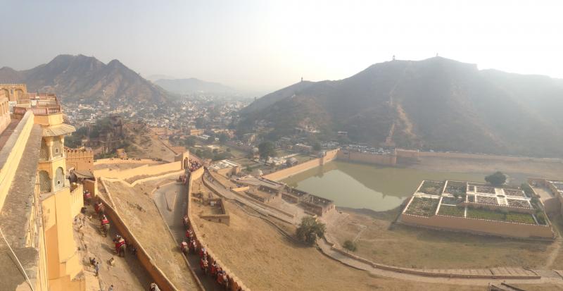 Kale-sarayda çok güzel zaman geçireceğinizden emin olabilirsiniz. Kaledeki çok sayıdaki terastan sarayın iç görüntüsü harika olduğu gibi dışarıda Jaipur şehrinin manzarası, aşağıdaki göl, fillerin kaleye çıkış görüntüleri ile sarayı çevreleyen ve insana Çin Seddi izlenimi veren surlar (18 km) bizi büyülüyor. Bu güzelliği bozan tek faktör ise yapışkan satıcılar.