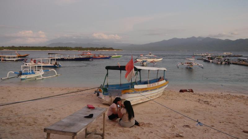 Şans bu ya Gili Adaları'na ulaşmak için Lombok’tan bindiğimiz motor tam da yolun yarısında bozuluyor. Öğlen saati hava çok sıcak, ailecek bir Lombok tarafına, bir Gili tarafına bakıyoruz. Acaba batarsak hangi tarafa yüzmeliyiz? 20 dakika uğraş sonrasında motorun gürültüsü yeniden başlıyor ve yolumuza devam ediyoruz. Yaşadığımız aksilik sonrasında yarım saat kadar rötarla Gili Trawangan’a ayak basıyoruz.