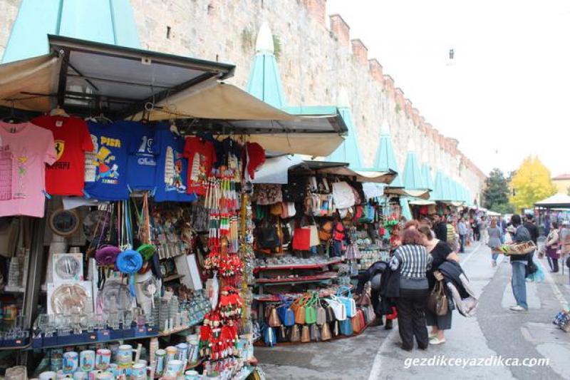 Mucizeler Meydanı'nda surlardan çıkar çıkmaz, turistik bir çarşı göreceksiniz. Burada uygun fiyatlı hediyelik eşyalar alabilirsiniz. Floransa ve Pisa'ya ait magnetleri buradan aldık biz. Diğer şehirlerinin temalarına ait olarakta çok ürün var aslında ama biz Roma sokaklarında akşam dolaşırken 1-2 eurocu gördüğümüz için daha gezinin ilk günlerinden hediyelik çok şey almıştık zaten :) Burada bir tane maske beğendik ama fiyatta anlaşamadık, iyi ki de öyle olmuş sonra daha güzelini Venedik'ten aldık. Yalnız satıcılar işi öğrenmiş, daha biz yaklaşmadan türkçe olrak 'kardeş buyur gel' demeye başlıyorlar, çoğu Bangadeşli.