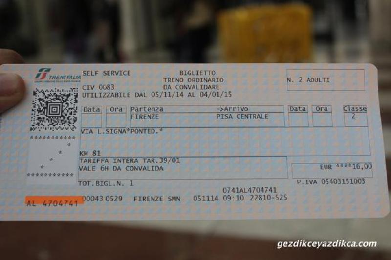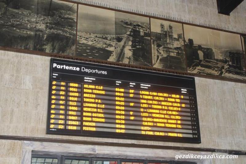 Treninizin hangi perona yaklaşttığını da istasyondaki büyük ekranlardan takip edebilirsiniz. Pisa tek yön gidiş bileti:8 euro. Hatırlatmamız gereken bir başka uyarı da biletleri etrafta gördüğünüz sarı makinalarda kesinlikle okutmanız gerektiği.