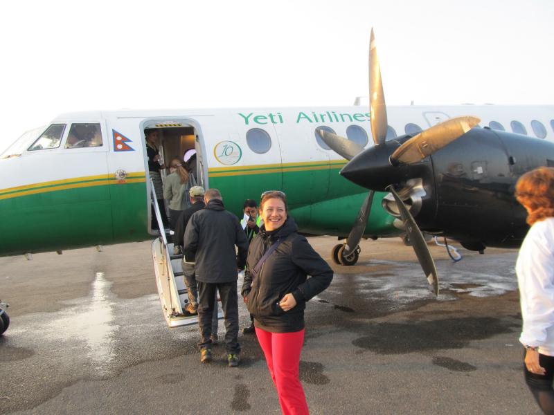 Sabah gün doğmadan uyandık. Hızlıca giyinip, otelin bahçesinde bekleyen aracımıza binerek yola çıktık. Havaalanına geldiğimizde uçağımız hazırdı. Havaalanı gibi uçaklar da öyle küçüktü ki; “Everest’i görebilecek yüksekliğe bu uçaklar ile ulaşabilir miyiz?” diye düşünmekten kendimi alamadım. Eğilerek yürüdüğümüz uçağın içinde bir yanda ikili, diğer yanda da tekli koltuklar vardı. Havalandığımızda artık hava iyice aydınlanmıştı.