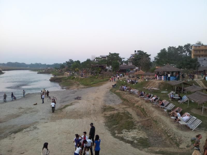 Odamız hemen bahçenin içinde olduğu için bavullarımızı bırakır bırakmaz nehir kenarını keşfetmek için yürüyüşe çıktık. Güneş gizemli bir şekilde nehrin içine batarken, şezlonglarda oturan insanlar bu muhteşem görüntüyü seyrediyor, o arada gezintisini tamamlayıp, dönen kanolar kıyıya yanaşıyordu. Biz de o ana tanıklık ettik. Yürüyüş sonrası açık büfe servisten yemeklerimizi alarak, terasta bizim için hazırlanmış masalara geçtik ve keyifle yemeğimizi yedik. Daha sonra Milli Park alanı içinde kalan köylerde yaşayan Taru kabilesinin yerel danslarını izlemek üzere bahçedeki yerlerimizi aldık ve beklemeye başladık.
