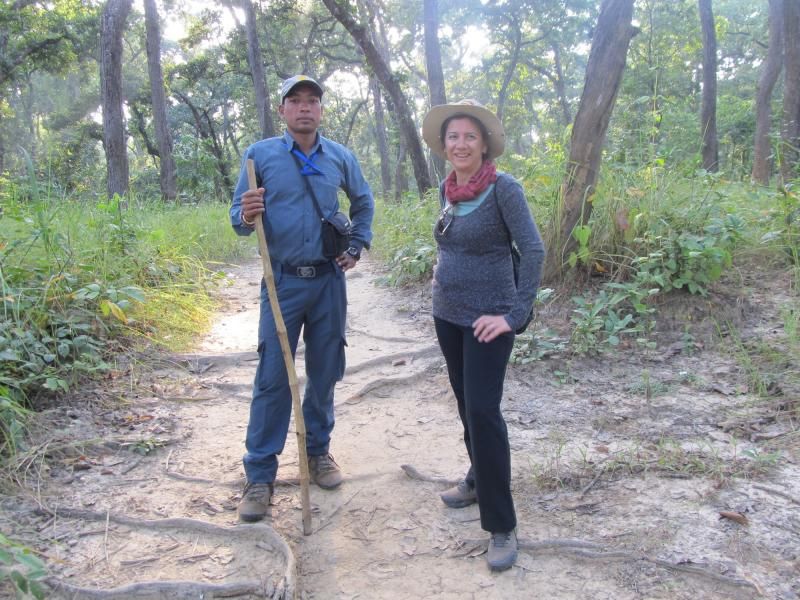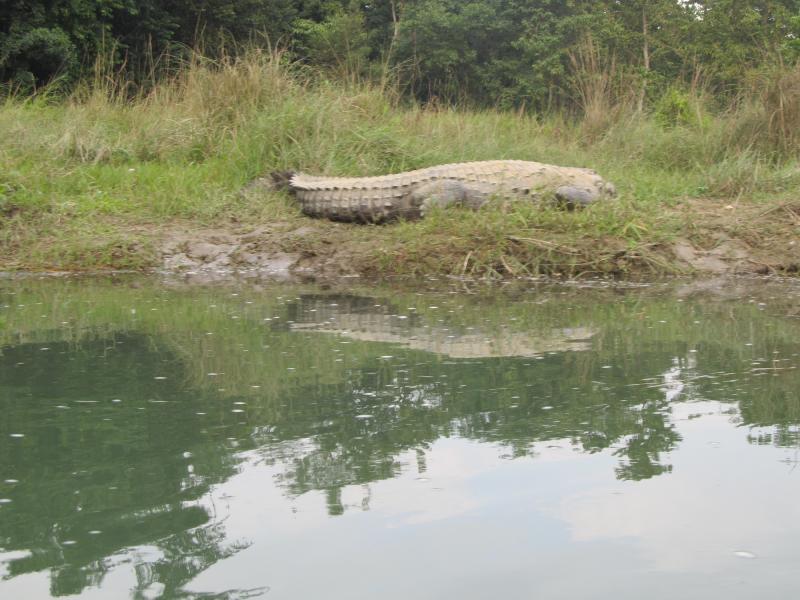 İnişten sonra görevliler uçuş sertifiklarımızı dağıttılar ve biz de bu anı ölümsüzleştirmek için fotoğraflarımızı çekip, kahvaltıdan sonra yola çıktık. Sağımızda Trisuli Nehri olmak üzere, yeşilin her tonunun bahşedildiği doğa harikası virajlı yolların kenarlarında kurulu büyüklü küçüklü köylerin arasından dere tepe demeden, sallana sarsıla, hoplaya zıplaya yüzelli kilometrelik yolu dörtbuçuk saatte giderek Chitwan Milli Parkı’na ulaştık. National Geographic'te pek çok kez izlediğim dünya cennetindeydik. Nehrin kenarındaki otelimiz River Side rengarenk çiçekli, yemyeşil bir bahçenin içinde kurulmuş, muz ağaçları, arokaryaları, kuru otlardan yapılmış çardakları, çardakların altındaki tahta masa ve sandalyeleri, nehrin kenarındaki şezlongları ile o kadar rahatlatıcıydı ki burada kalacağımız birkaç günün sonunda ayrılmak istemeyeceğim, hatta şu an yazarken bile orada olmayı arzulayacağım kadar huzurluydu.