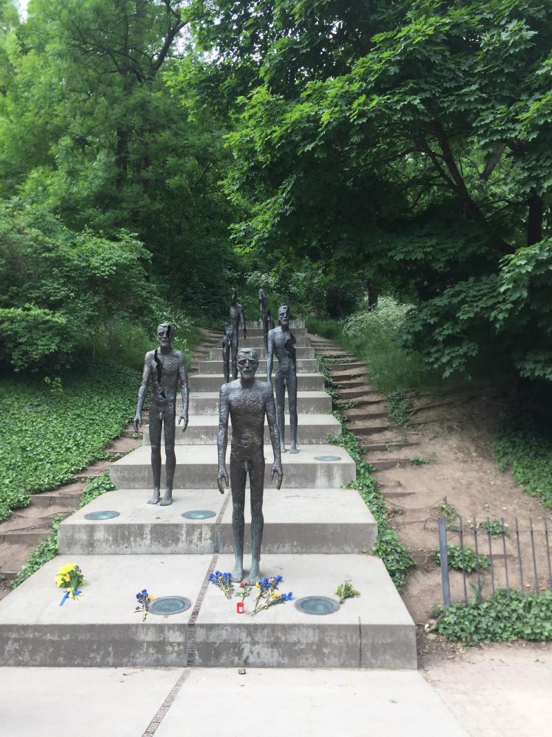 Petrin Tepesi'ne giderken, komünizm kurbanlarına ithaf edilmiş birkaç heykeli görmek için buraya mutlaka uğrayın. Merdivenin ortasındaki metal şerit, rejim sırasında kaç kişinin acı çektiğini sembolize ediyor. 2002'de yapılan bu heykeller, kurbanların fiziksel acılarını ve duygusal sıkıntılarını tasvir ediyor.