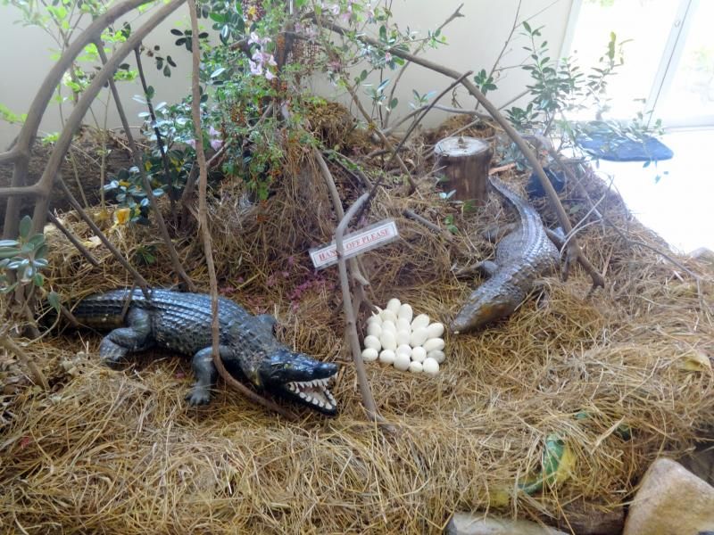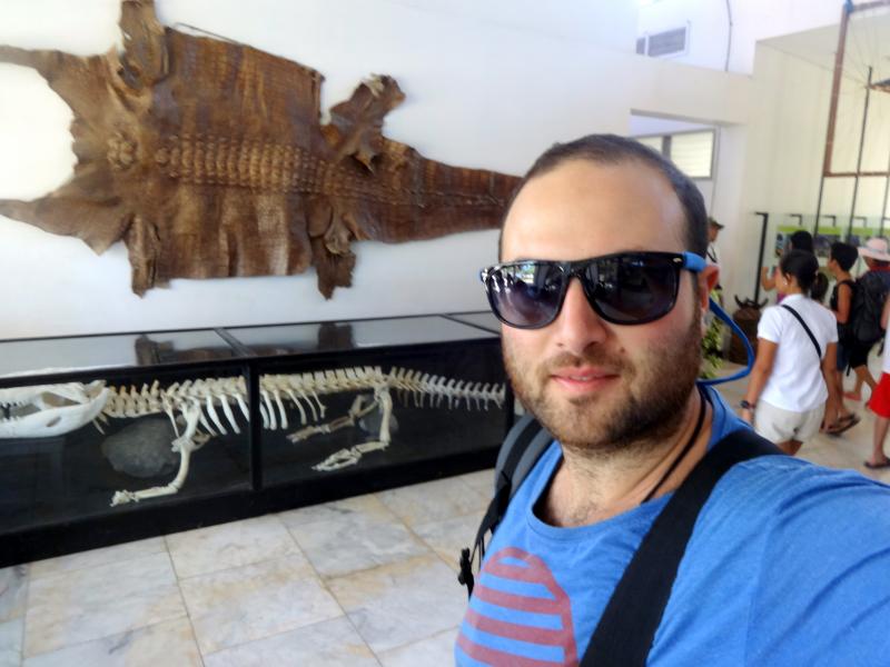 Hemen girişte büyük bir timsah derisi ve iskeleti dikkatimi çekiyor.
