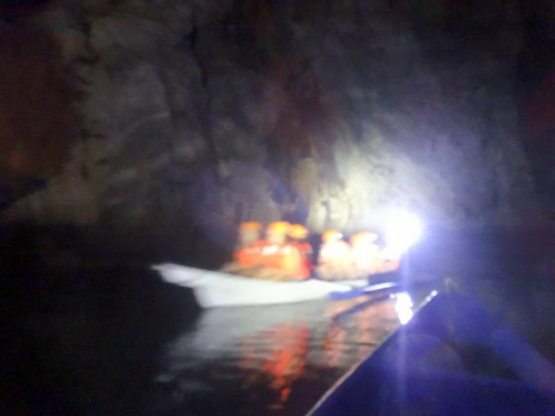 Arkamızdaki guide hem kürek çekiyor hem de sağ sola ışık tutup mağara sarkıtları birşeye benzetip anlatıyor :)